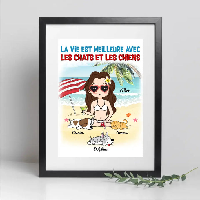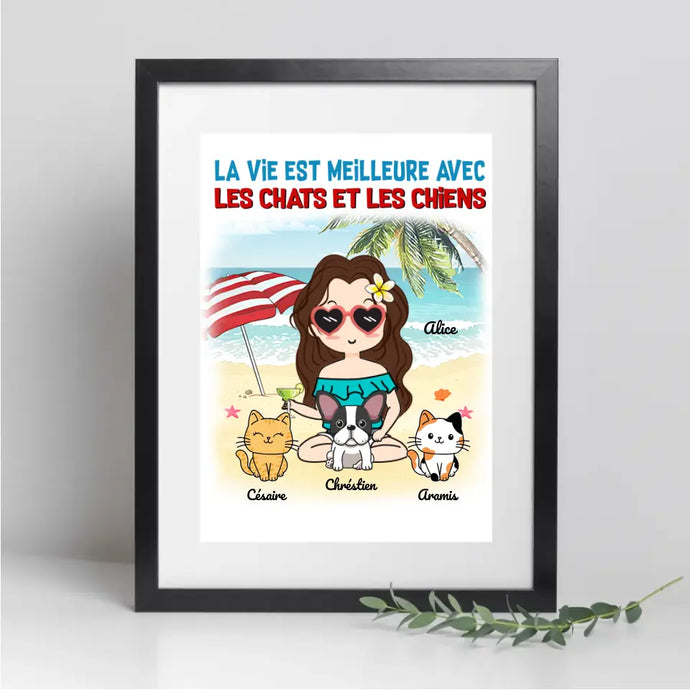 Jusqu'à 9 animaux, Passe partout personnalisée, cadeau pour Maman Chat, Chien, Été, Plage