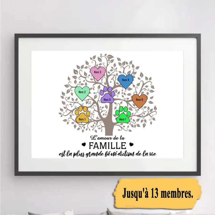 Jusqu'à 10 noms, Passe-partout personnalisée, Poster encadré cadeau, Notre famille un peu de folie beaucoup de bonheur