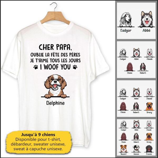 Jusqu'à 9 chiens, T shirt personnalisé chien, t shirt homme papa chien, cher papa
