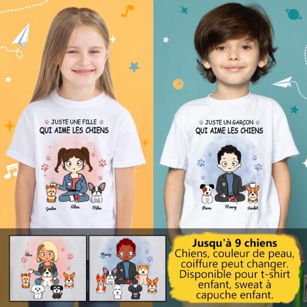 Jusqu'à 9 chiens, t shirt personnalisé chien, juste une fille garçon qui aime les chiens