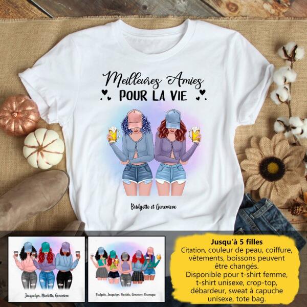 Jusqu'à 5 filles, T shirt personnalisé meilleure amie, t-shirt femme meilleures amies, meilleures amies pour la vie