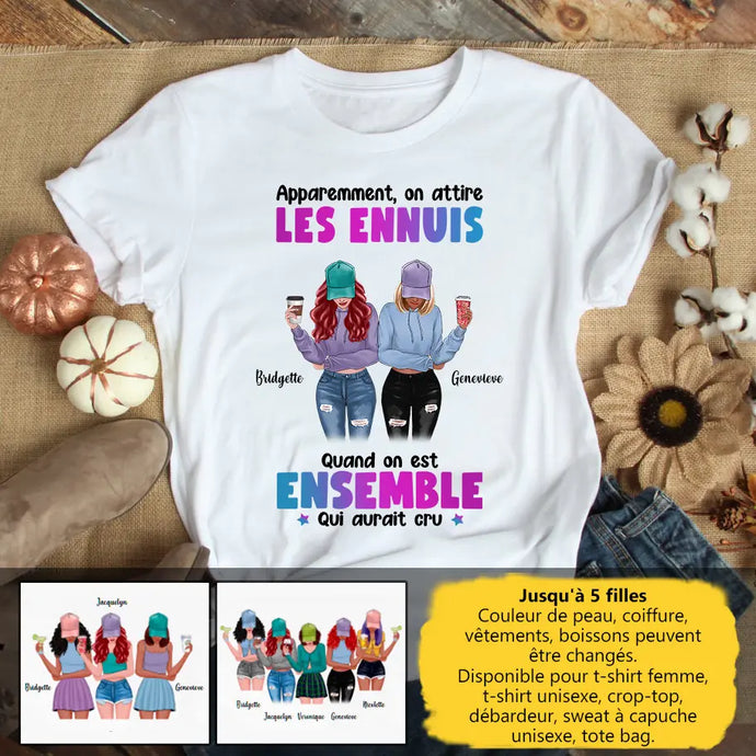Jusqu'à 5 filles, noms et arts personnalisés, T shirt personnalisé meilleure amie, t-shirt femme meilleures amies
