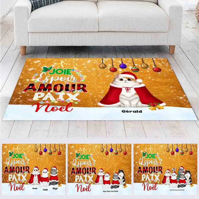 Jusqu'à 6 chats, Carpette personnalisé chat, Tapis chat Noël, Joie Espoir Amour Paix Noë