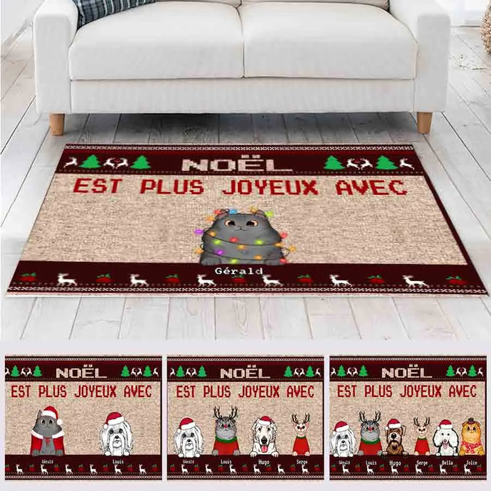 Carpette personnalisé, Tapis personnalisé chien et chat, Noël est plus joyeux avec