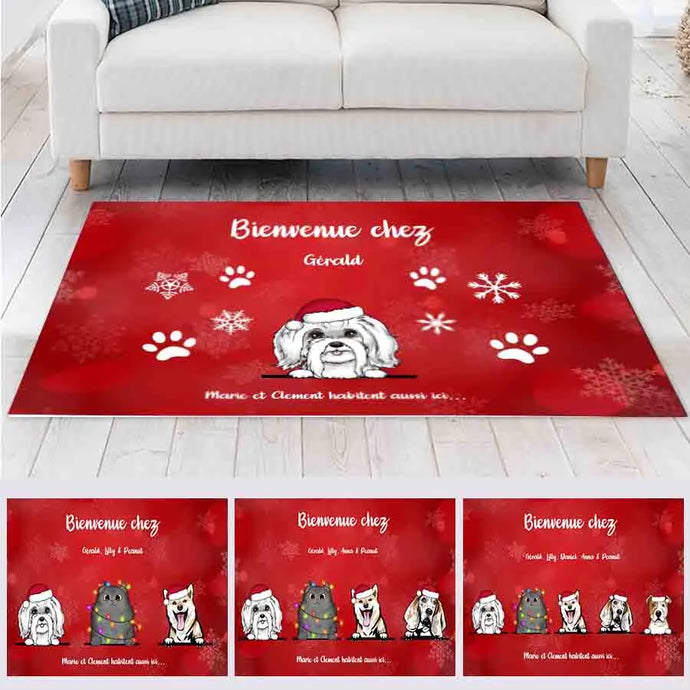Carpette personnalisé, Tapis Cadeau de Noël pour les amoureux des chiens et des chats, Bienvenue chez