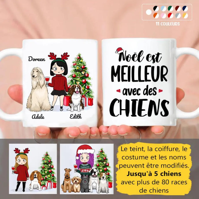Jusqu'à 5 chiens, Tasse personnalisée amoureux des chiens, tasse de Noël cadeau personnalisé de Noël