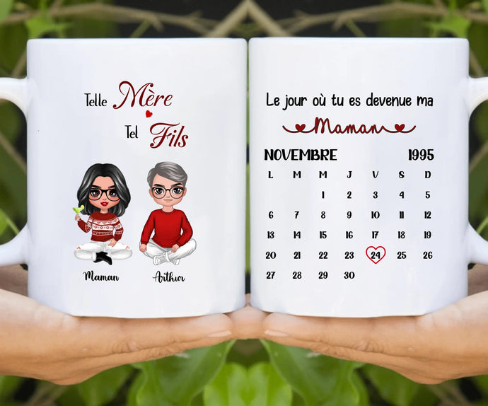 Date d'anniversaire Mug Calendrier personnalisé, Fête des mères Cadeaux pour maman, Telle mère tel fils