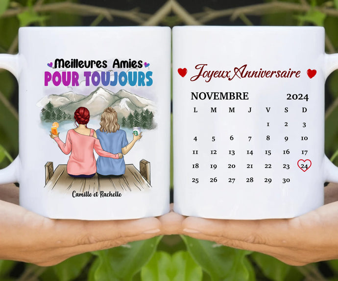 Date d'anniversaire Mug Calendrier personnalisé, Anniversaire Cadeaux pour sœur, Meilleures Amies Pour Toujours