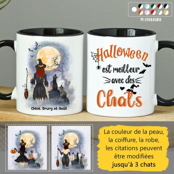 Jusqu'à 3 chats, mug chat personnalisé, tasse Halloween maman chat, Halloween est meilleur avec des chats