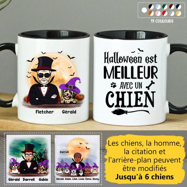 Jusqu'à 6 chiens, mug chien personnalisé, tasse Halloween Papa chien, homme qui aime les chiens