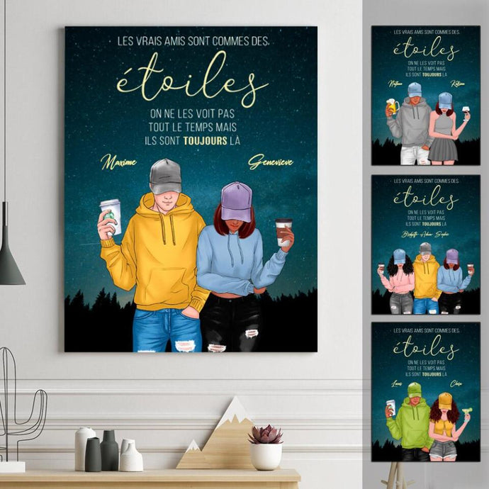 Jusqu'à 5 amis, Toile personnalisée, cadeau pour les meilleurs amis, Les vrais amis sont commes des étoiles