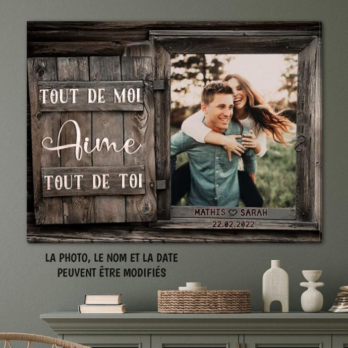 Toile photo personnalisée, Cadeau pour couple, mari, femme, petit ami, petite amie, Tout de moi aime tout de toi