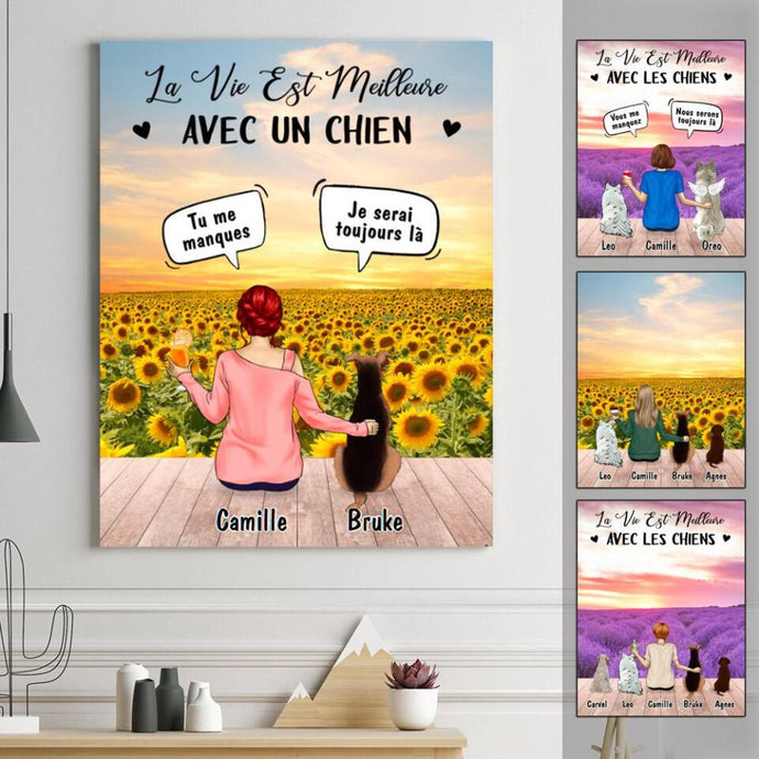 Tableau personnalisé, Jusqu'à 4 chiens, Toile personnalise pour les amoureux des chiens, je serai toujours là