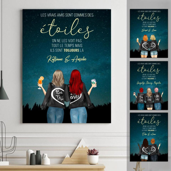 Jusqu'à 3 amis, Toile personnalisée, cadeau pour les meilleurs amis, Les vrais amis sont commes des étoiles