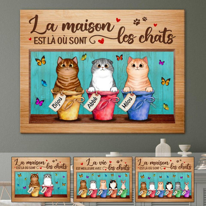 Jusqu'à 6 chats, toile personnalisée, cadeau pour les amoureux des chats, La maison est là où sont les chats