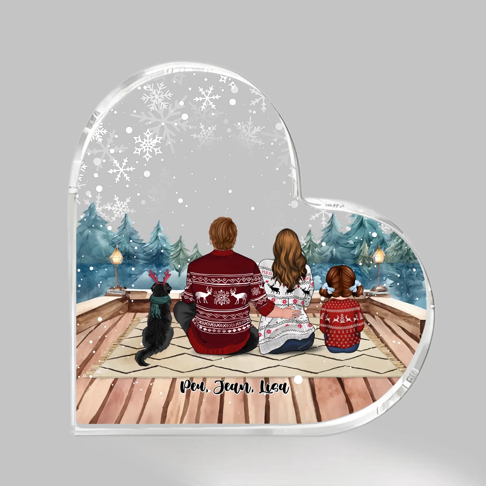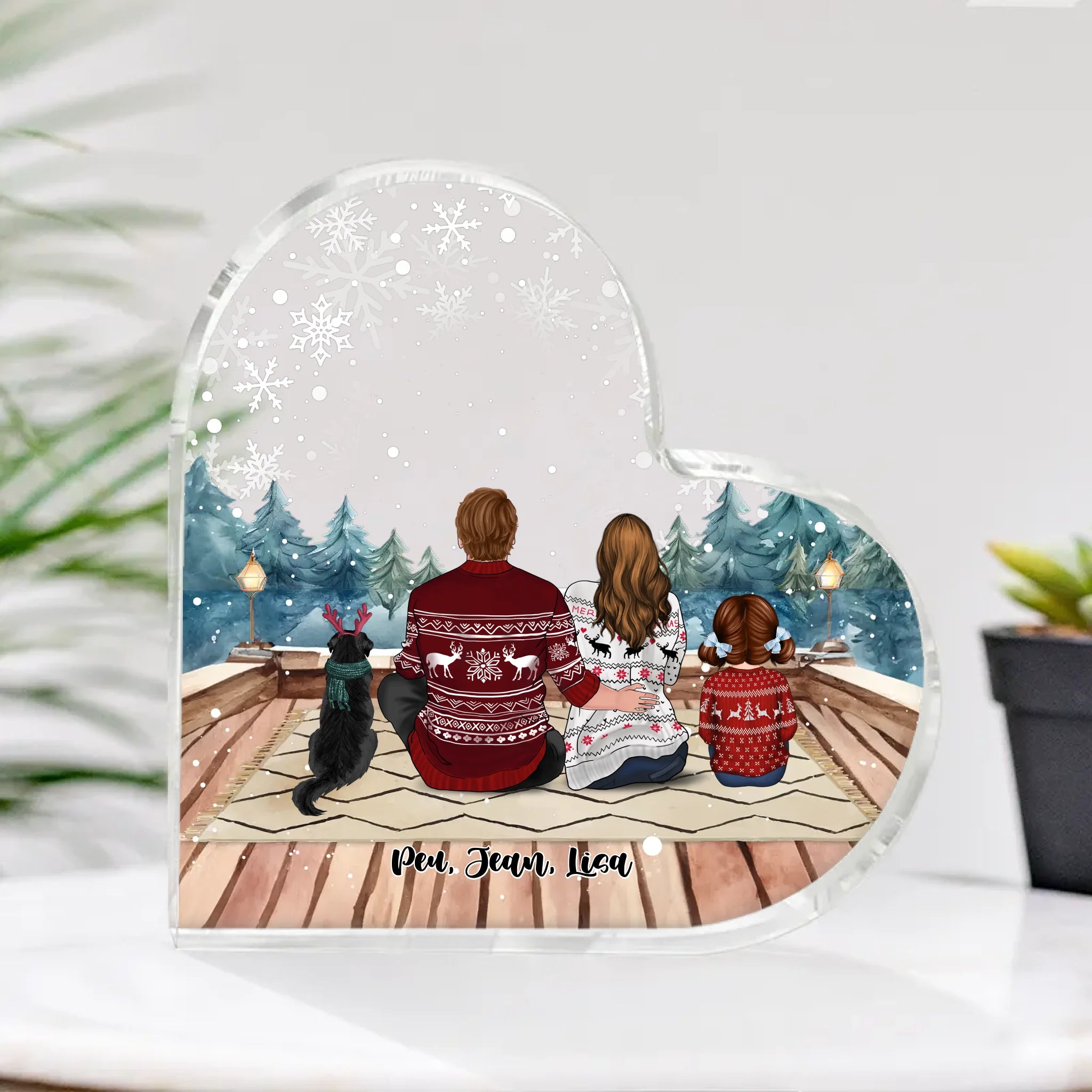 Jusqu'à 3 Animaux, Coeur acrylique personnalisée pour couple, Famille devant cheminée, Décoration de Noël