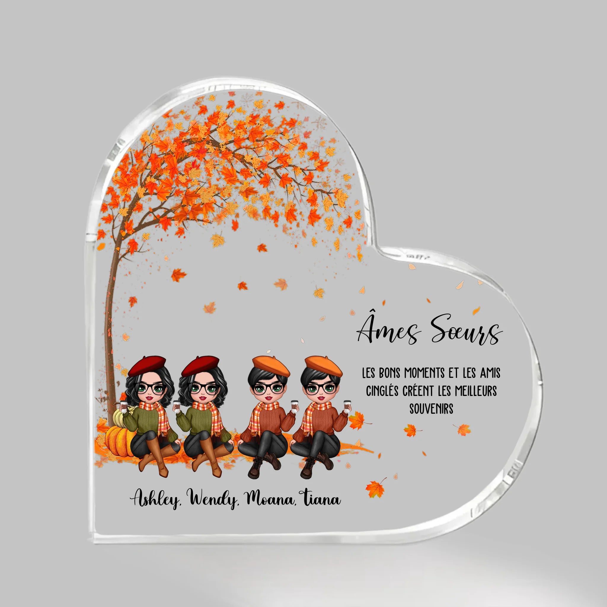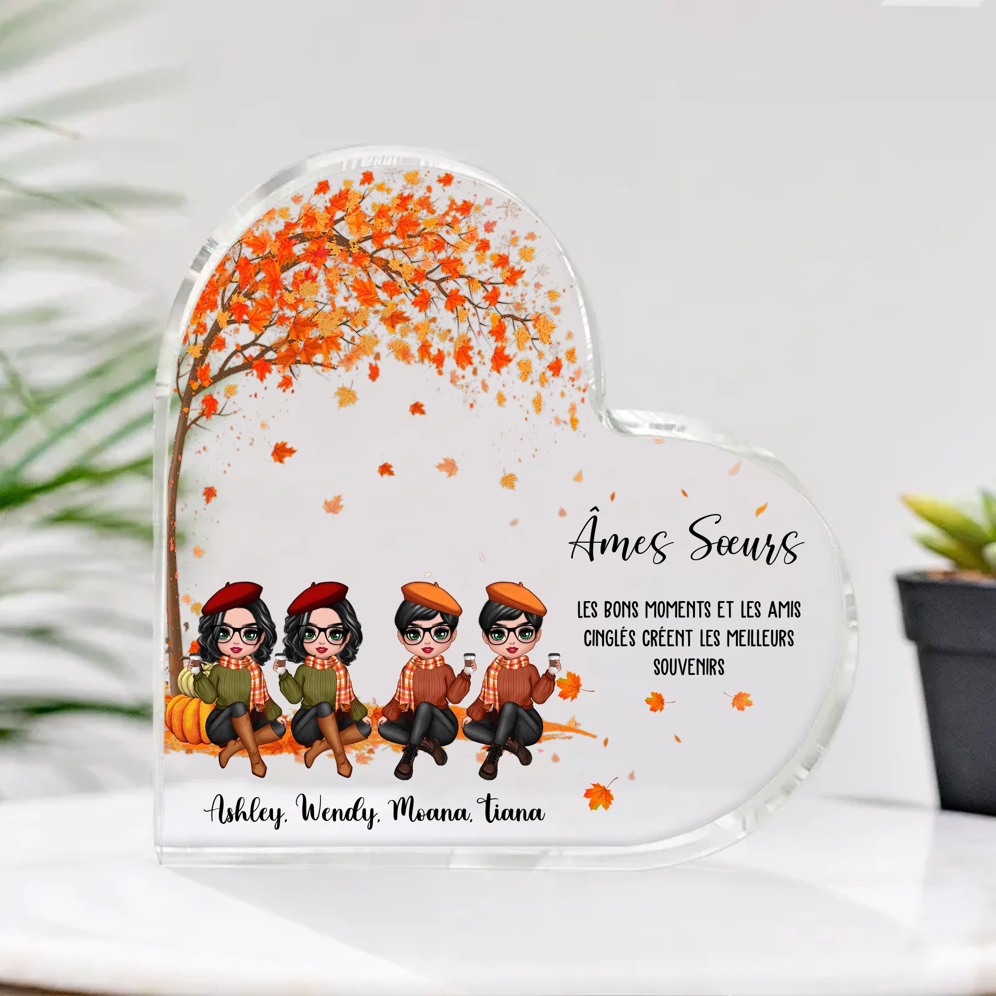 Jusqu'à 4 filles, Cœur acrylique personnalisée, Meilleurs amis de la saison d'automne assis sous un arbre