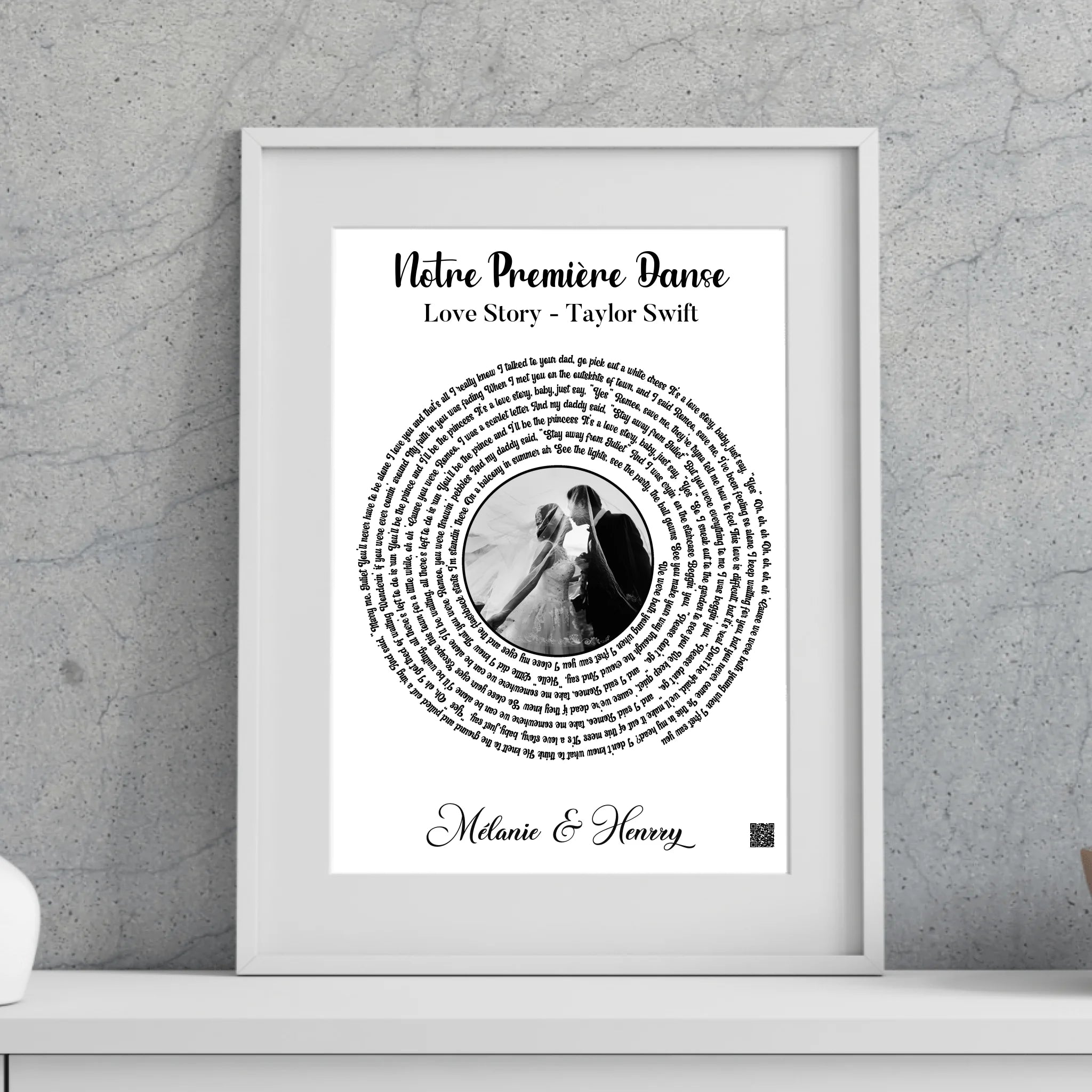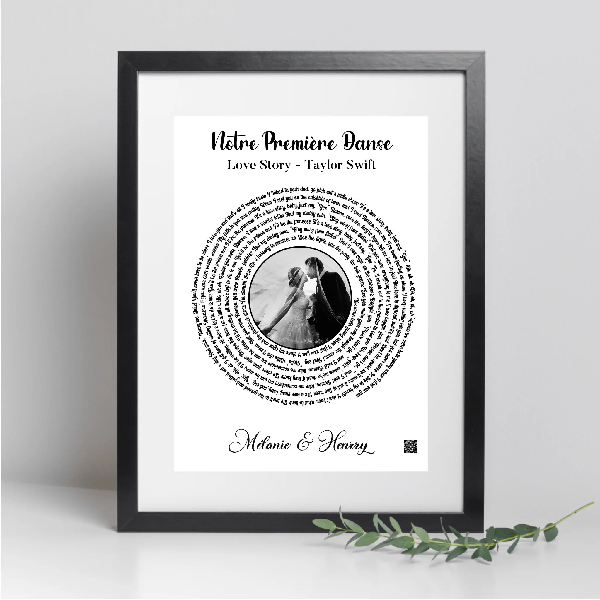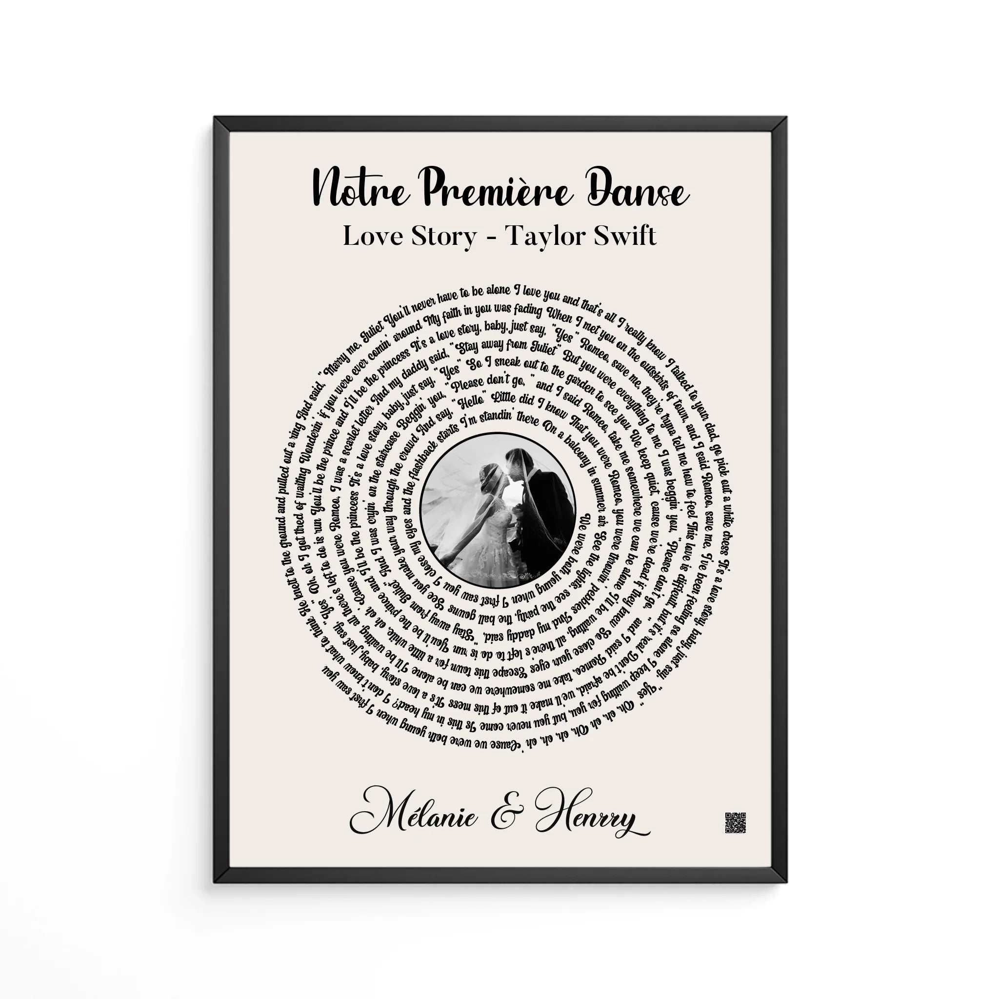 Paroles de chanson poster personnalisée, couple photo musical, cadeau pour d'anniversaire, chanson de mariage danse