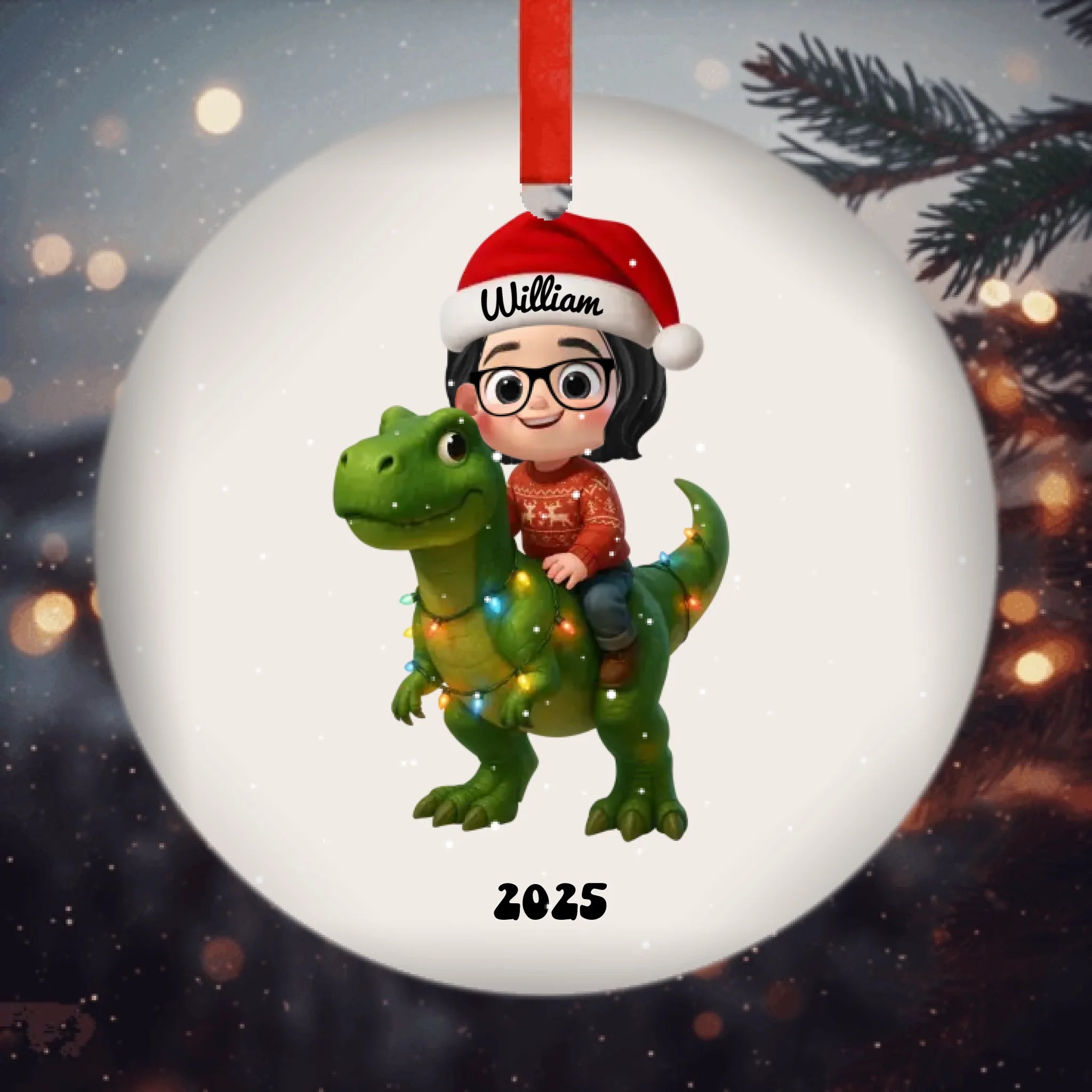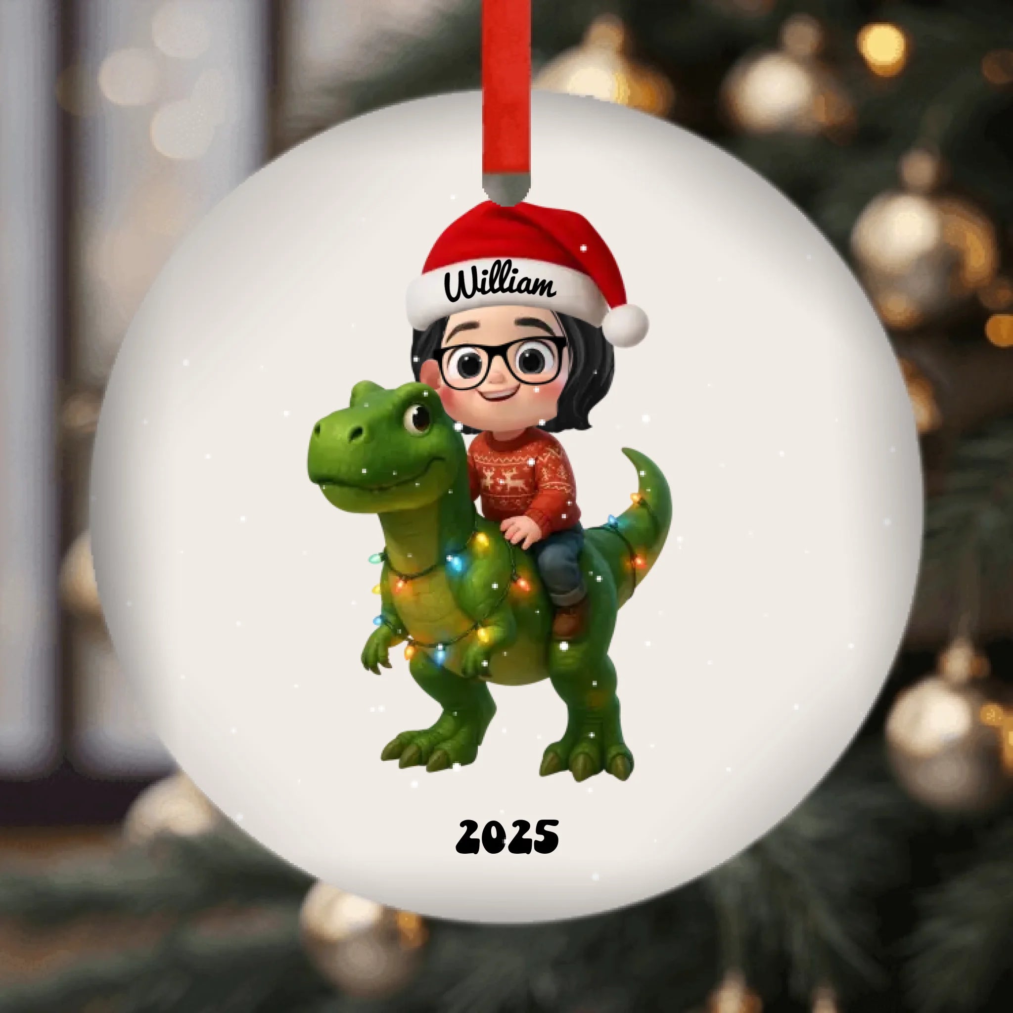 Personnalisés Ornements, Décoration de Noël Cadeaux Pour Famille, Petit garçon Enfant mignon avec un dinosaure
