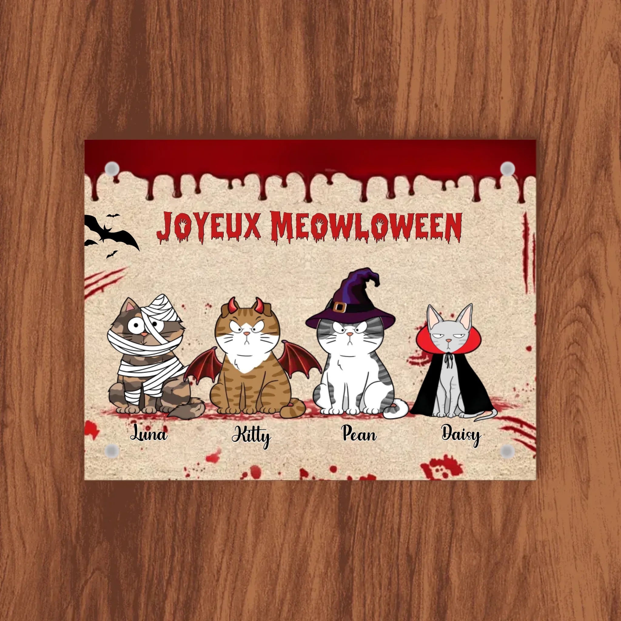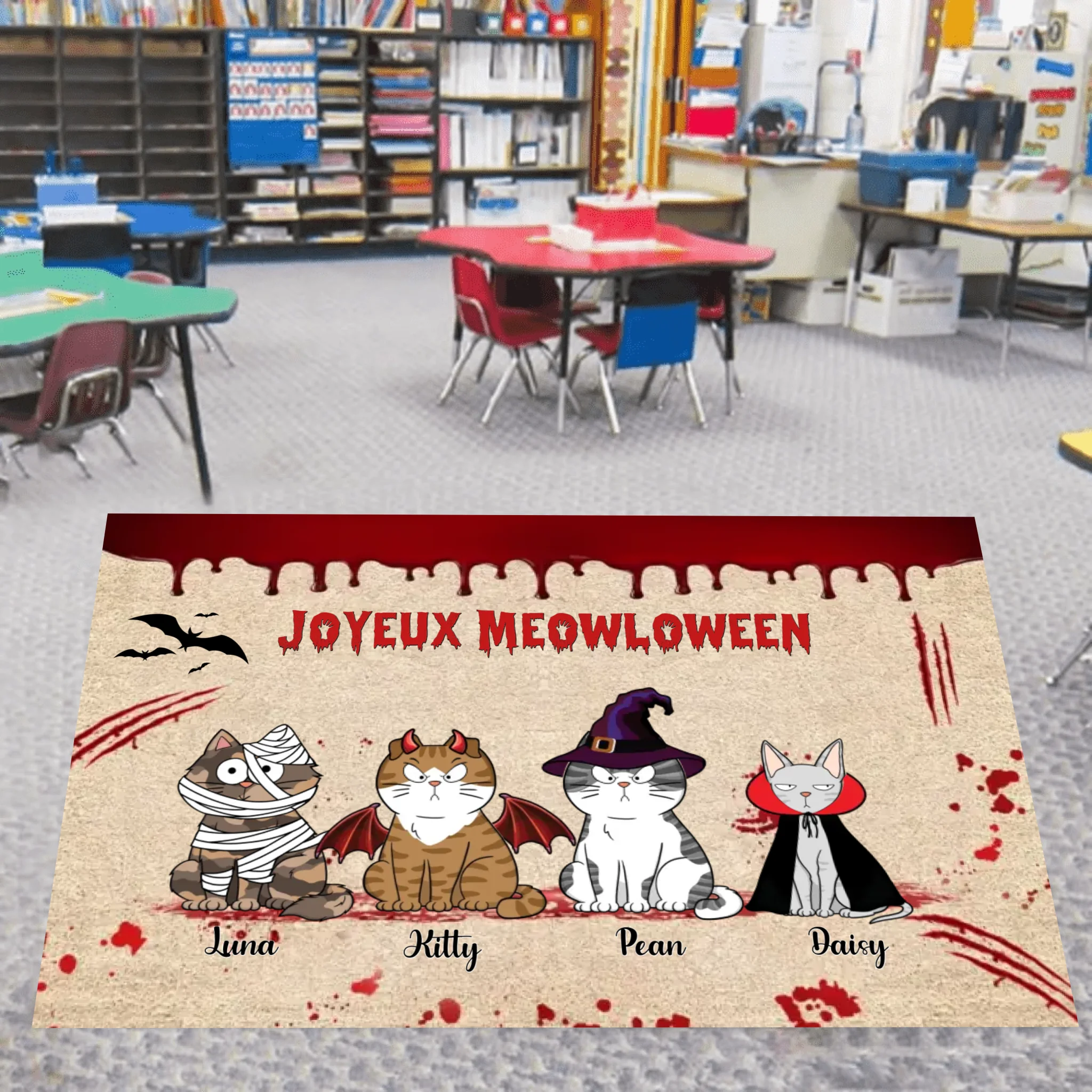 Tapis personnalisé Joyeux Meowloween Chats effrayants et agaçants, Paillasson décoration d'Halloween